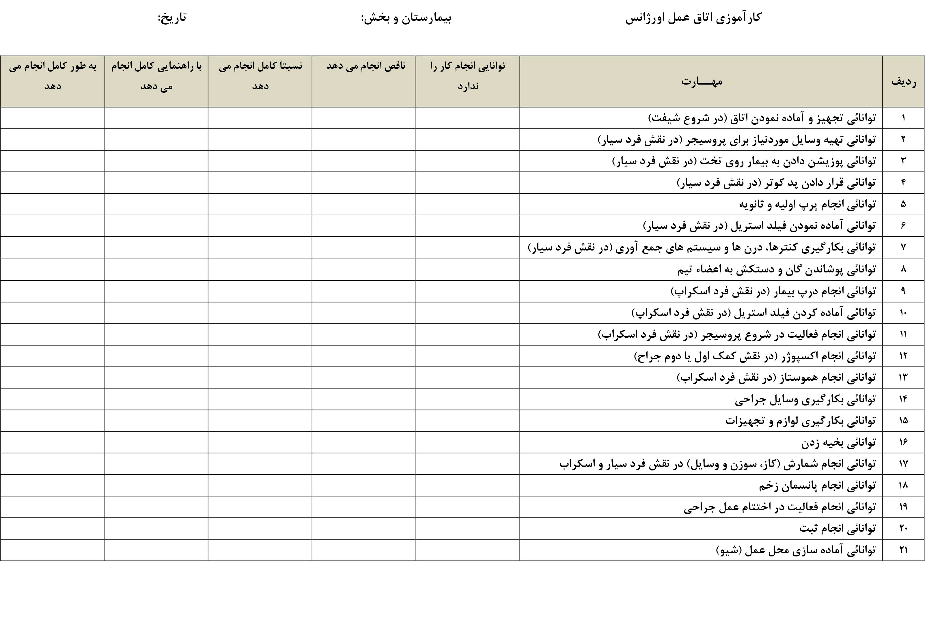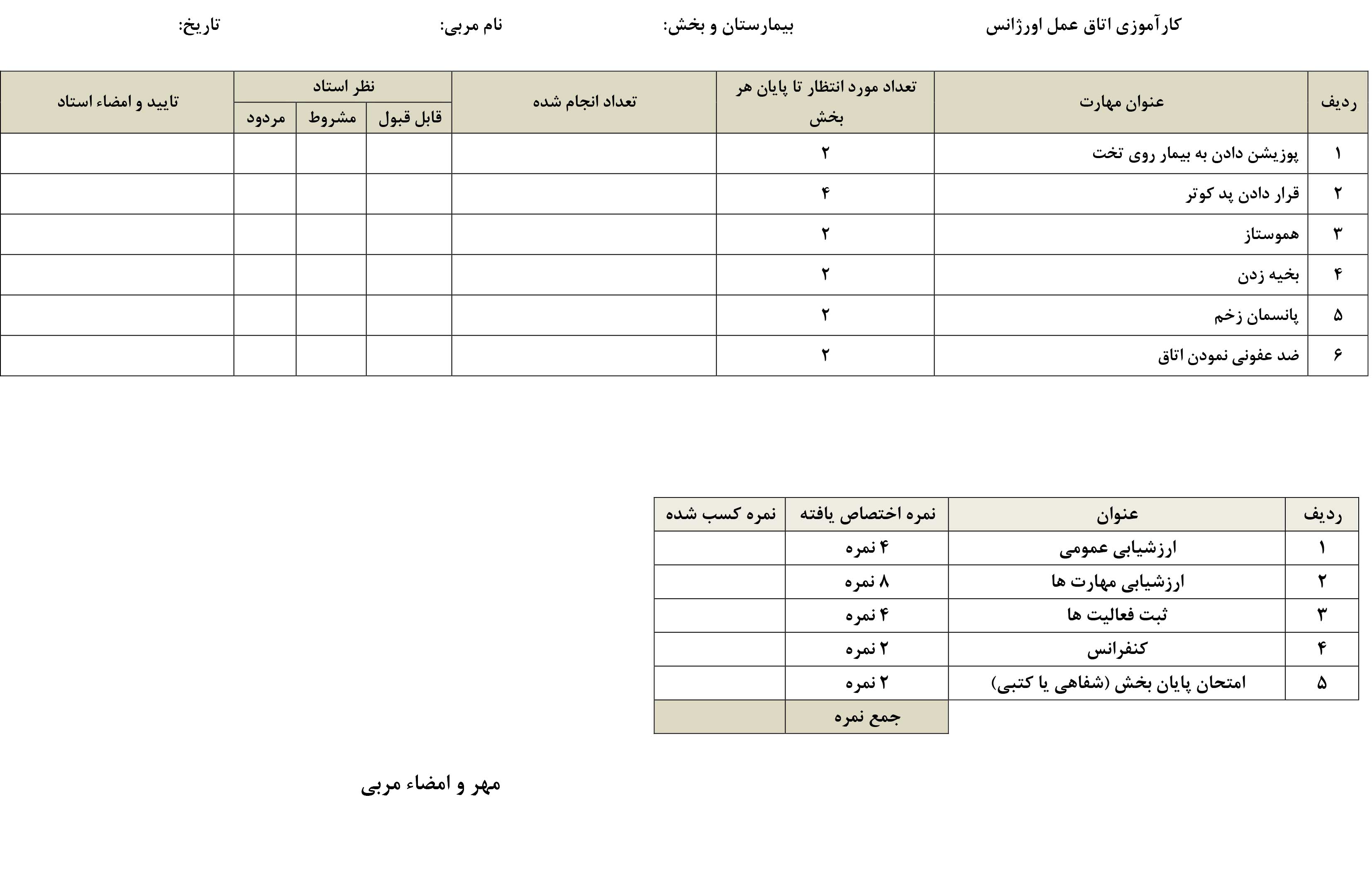 فرم های ارزشیابی عمومی کارآموزی دانشجویان رشته هوشبری و اتاق عمل